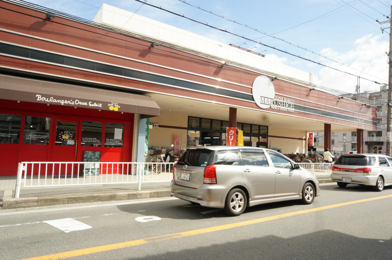 家をでて左へずっと行くとスーパーマルシゲがあります。