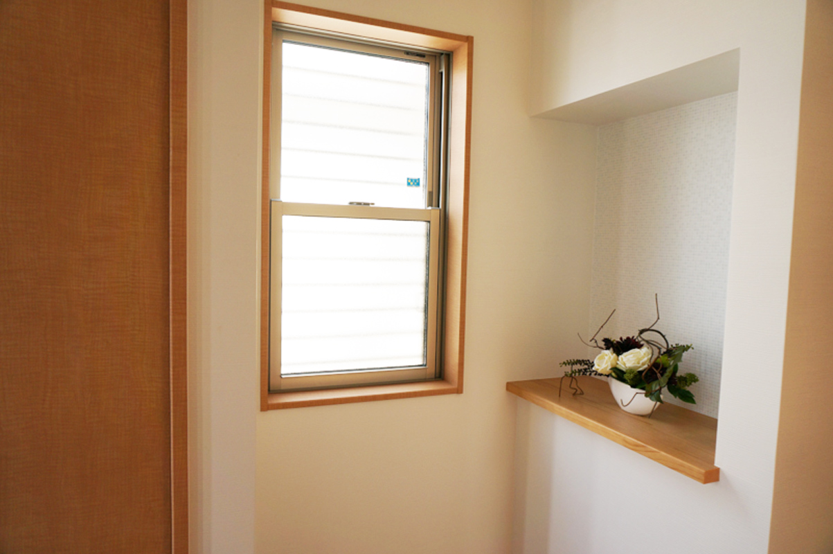 2階廊下には明かり取りの窓があります。これだけで明るさが大分違います