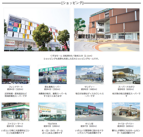 徒歩圏にはスーパーやドラッグストア等の生活施設、総合病院や小児科等の医療施設、保育園、幼稚園、小学校、中学校、高校の教育施設が充実している『オリティア樟葉』にぜひ遊びにいらして下さい。