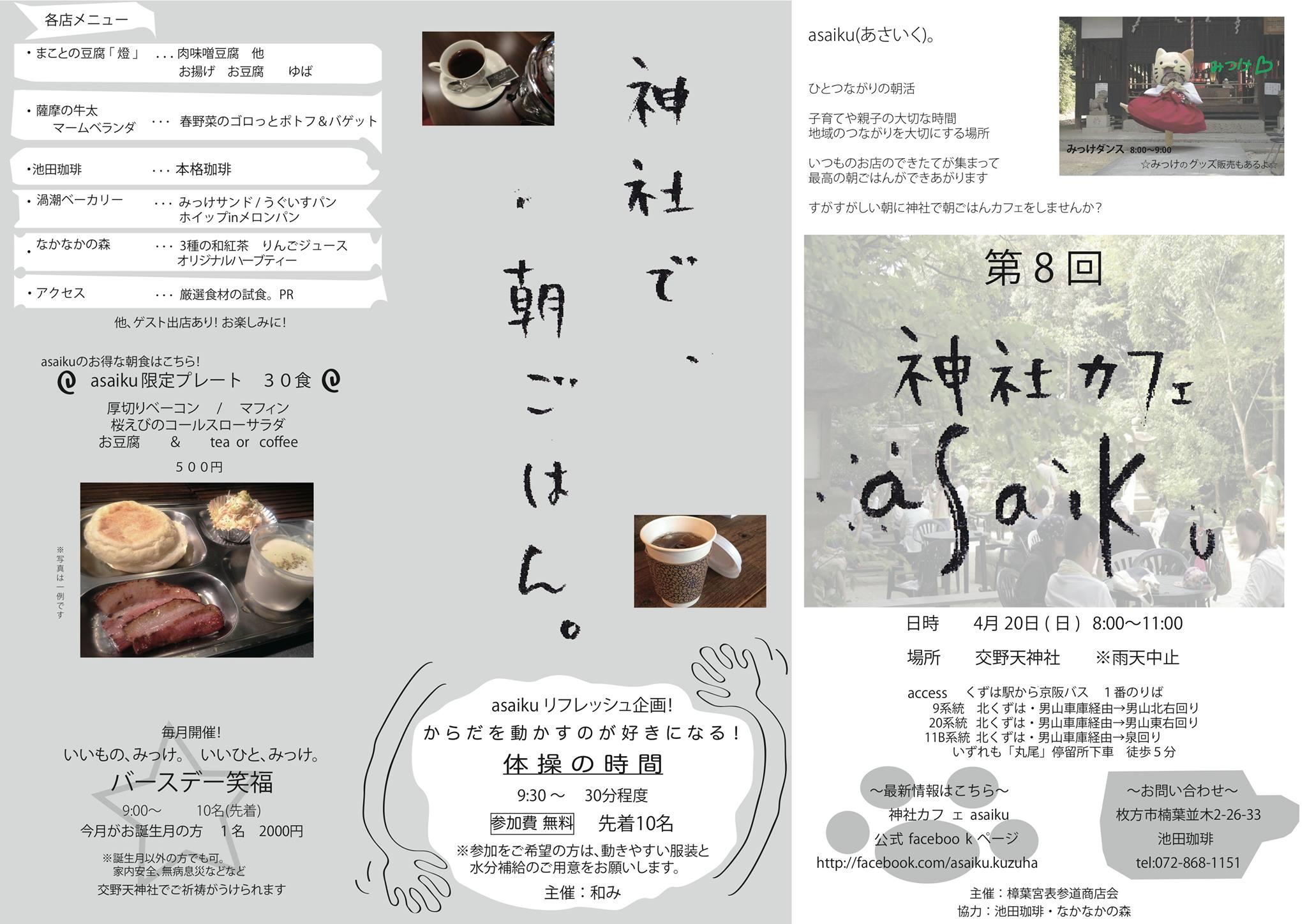 日曜の朝が楽しくなる「“神社で朝ごはん” asaiku(あさいく)」の第8回目が4月20日(日) 8:00~11:00に開催されます![]()