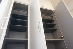 玄関左側には上の方までたくさん収納可能なシューズクローゼット。