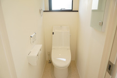 奥にあるのは、お手洗いです。棚かあるので、本棚にするのもありかと思います。トイレが落ち着く場所にもなりそうですね。