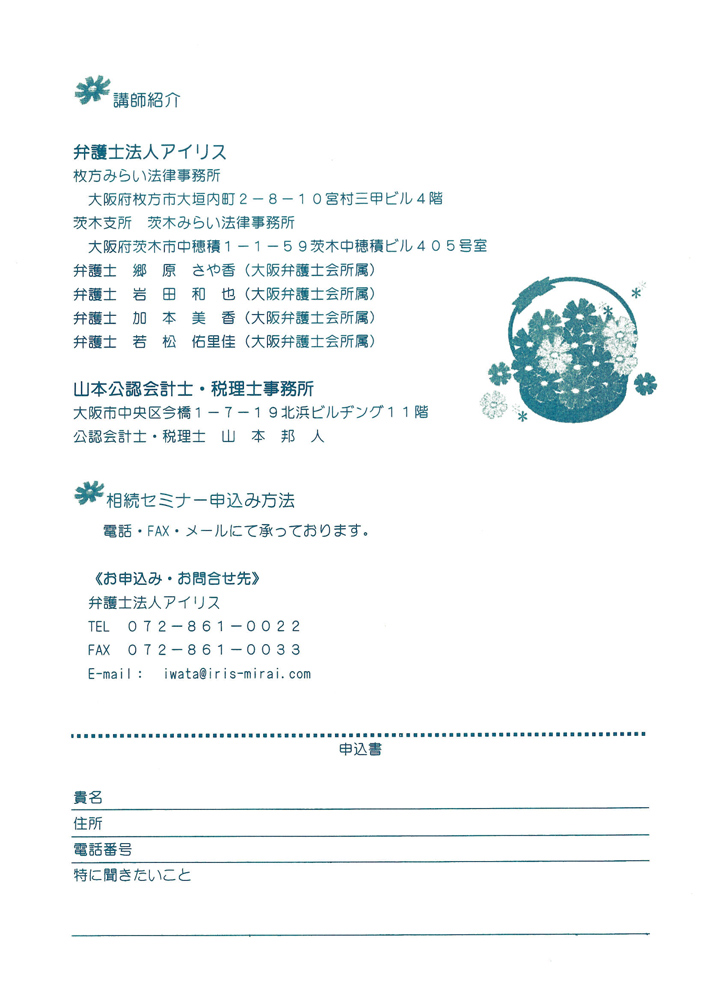 【主催】 弁護士法人アイリス 枚方みらい法律事務所(大阪弁護士会)
