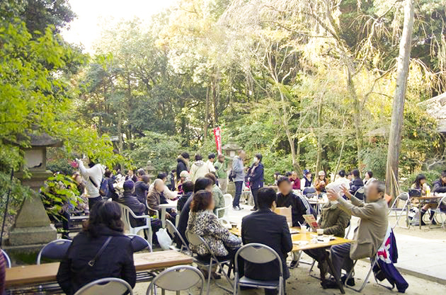 鎮守の森に囲まれ、ゆっくり食べられるスペースがたくさん。
