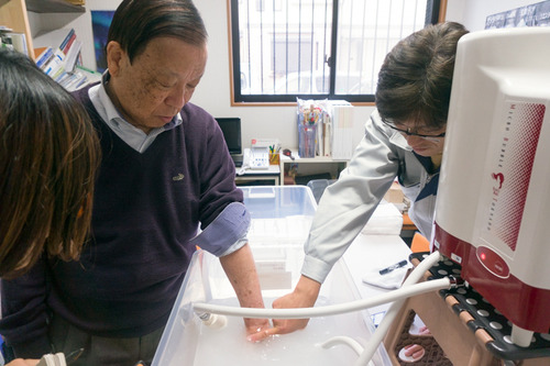 枚方市駅前のサンプラザビル1号館4階にある皮膚科「山中診療所」の山中先生もマイクロバブルトルネードをデモ機で試してみた結果、その効果を認められ、ありさ住宅で組み込みタイプをご購入されて、個人で使っているそうです。
