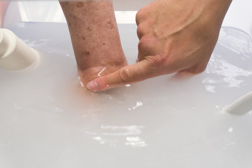この通り。腕まくりをしている方がマイクロバブルのお湯につけていた方です。