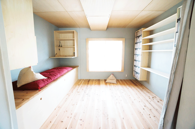 窓際ベンチも標準設備!そしてこれから見ていく作り付けの棚などもすべて付いてくるんです![]()
