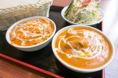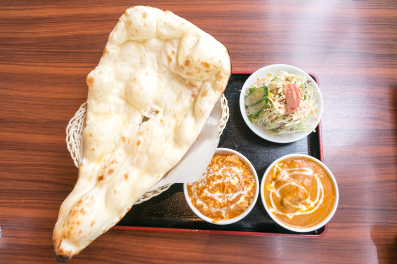 ナン・サラダ・カレー2種がセットになった、お店で一番人気の