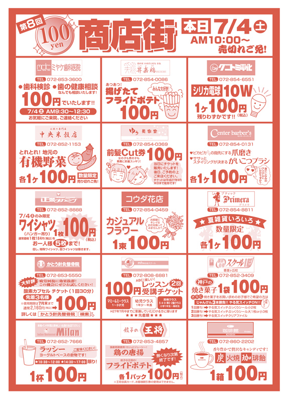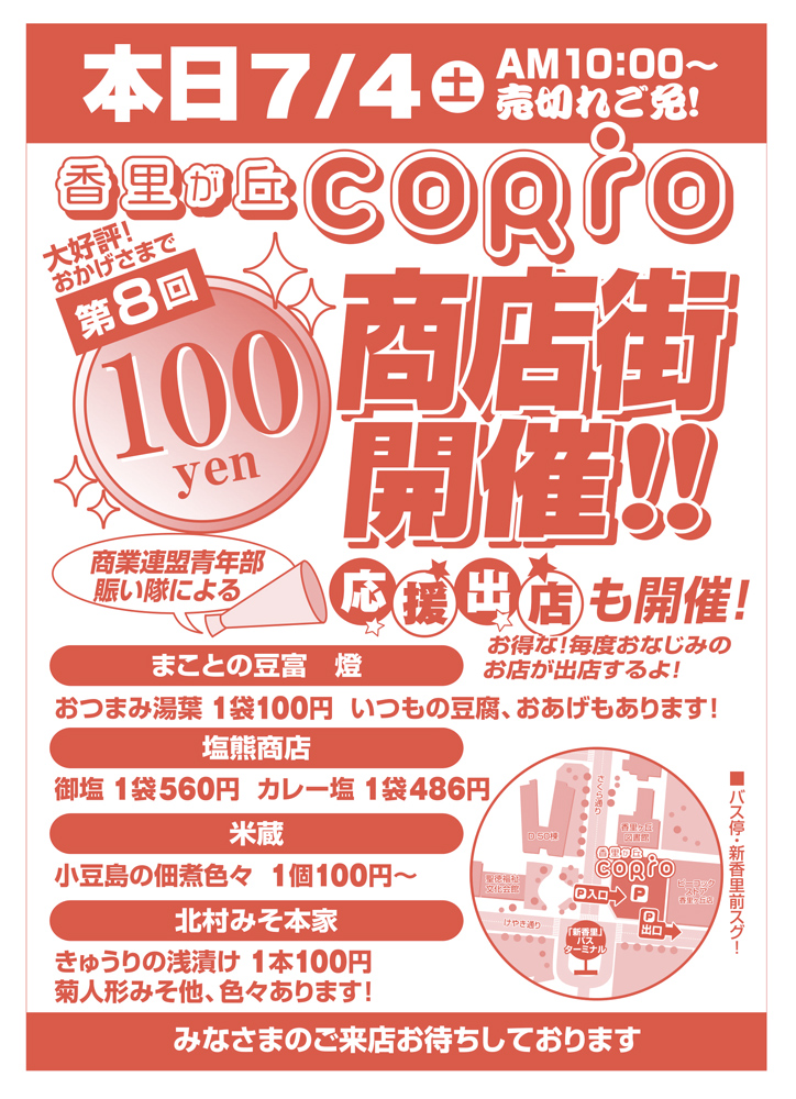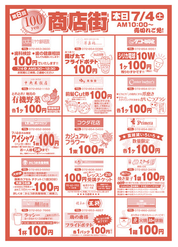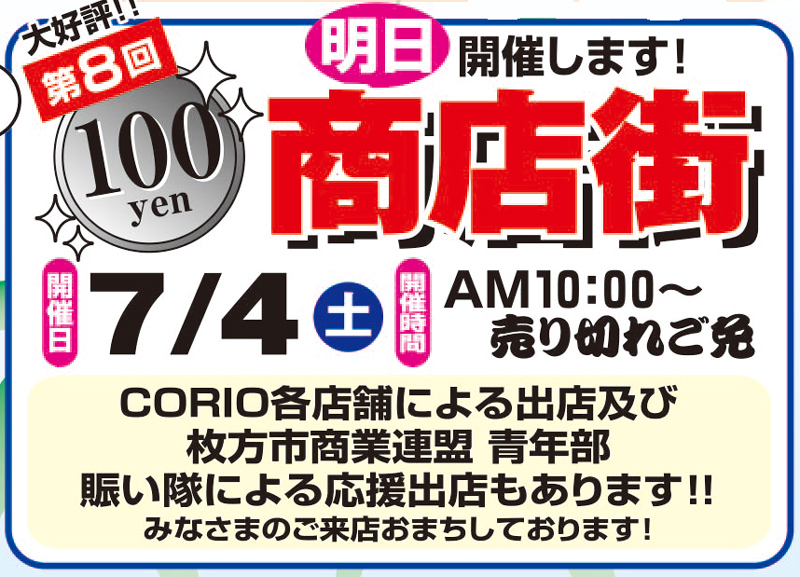☆毎回好評の100円商店街開催! (7月4日(土)10:00〜)