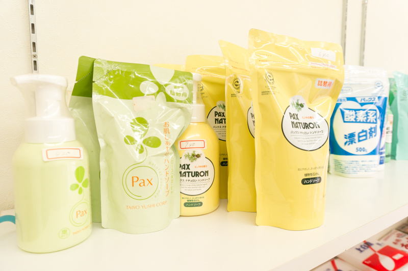 お米以外にも、枚方市消費センター推薦の環境にも身体にもやさしい洗剤なども取り揃えています。