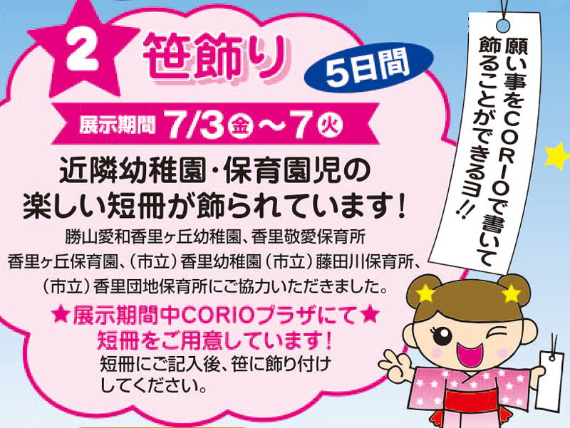 近隣幼稚園・保育園児の楽しい短冊が飾られます。