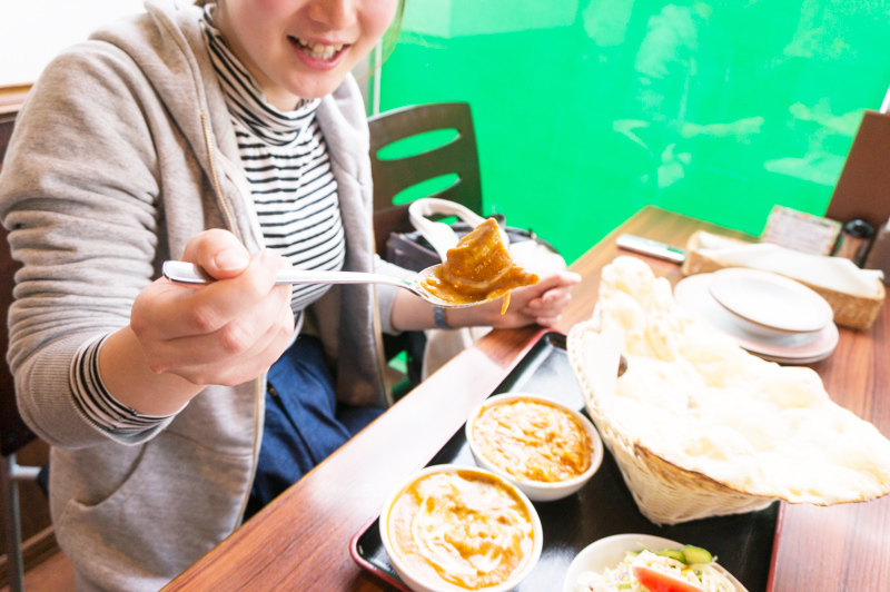 季節の野菜が入った日替わりカレーとチキンカレーが食べられるBランチ900円(税込)がおすすめ!