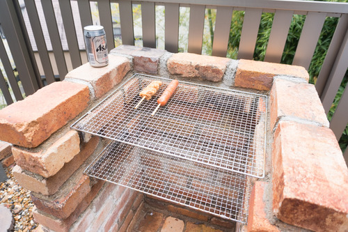 社長お手製、レンガ造りのバーベキューコンロがあるんです