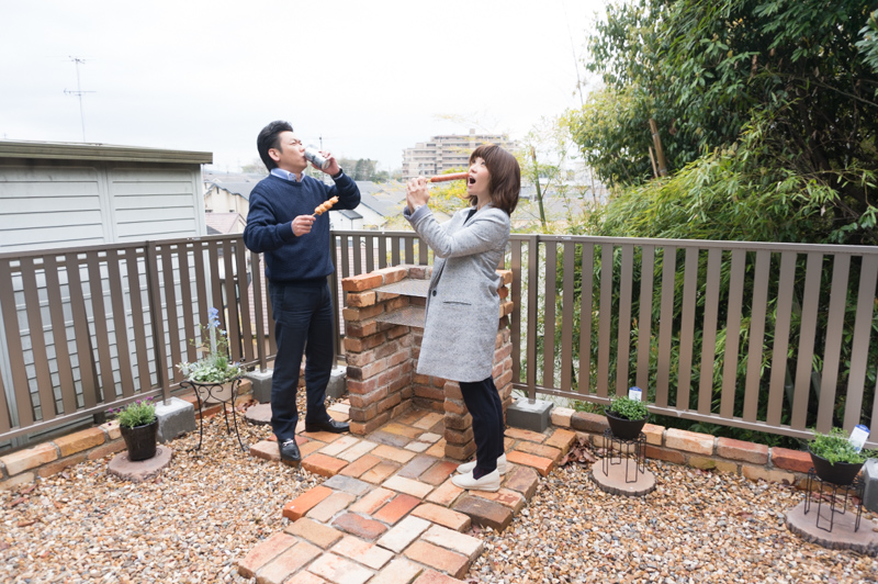 レンガのバーベキューコンロや立水栓はあるだけで存在感大!