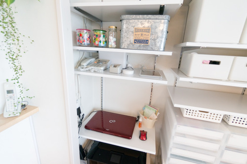 左側にはパソコンやプリンター、電話などが置けるようになっていて、配線も完備!