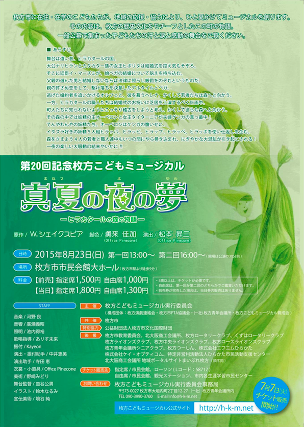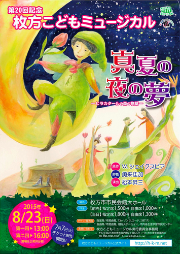 今年のお話を一言で言うと、『枚方のファンタジーとシェイクスピアのファンタジーの融合』です。枚方のファンタジーと言えば、七夕伝説や在原業平の話です。それらが原作に加わります!