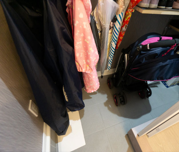 たくさんある靴を収納できたのと、上着・レインコート・傘・ベビーカー・抱っこ紐など出かける前にいるものをここにギュッと収められたのがよかったですね♪」