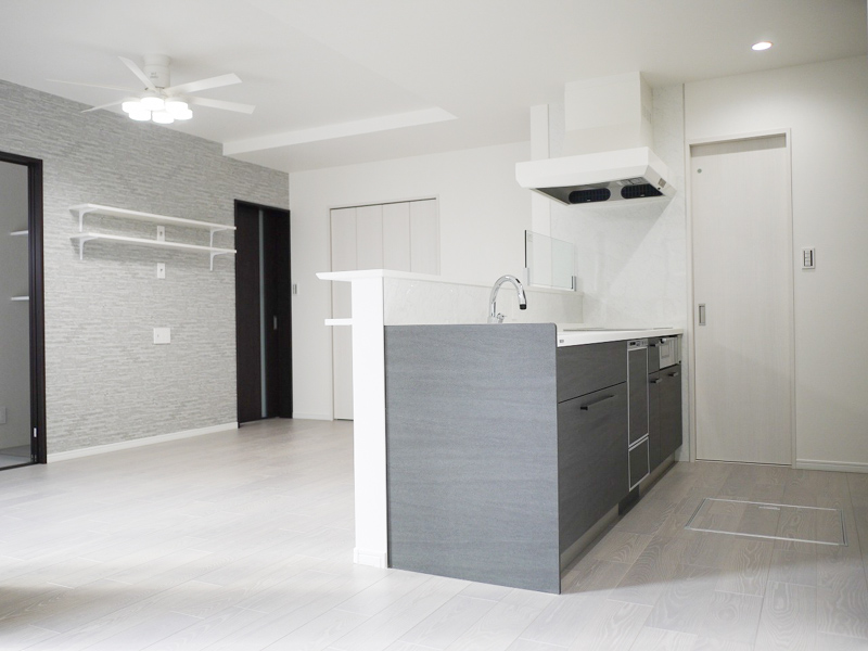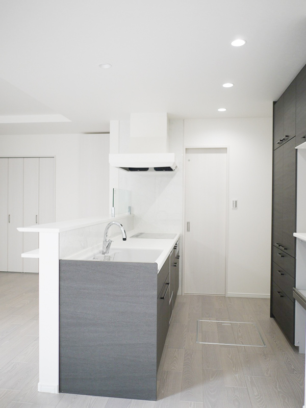 「最初にもありましたが、キッチン・リビングダイニングは床を含め全体的にグレー系な感じにしました。