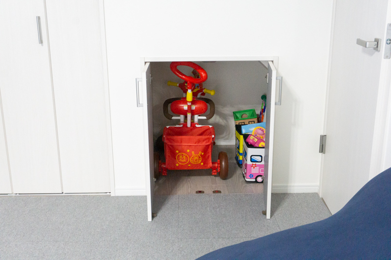 こういう大型のおもちゃって置き場所困るけど、こうやって居場所を最初から作ってあげるといいですね〜」