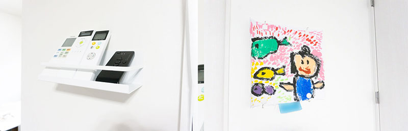 「実はここ以外にもリビングにいくつか壁に磁石のボードを入れてもらってて、子どもの絵なんかを飾っています」