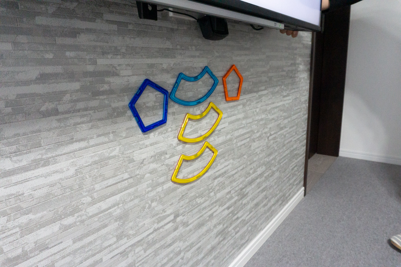 「あとさっきのニッチと同じく、壁を一部分マグネットのボードにしてもらってマグフォーマーというおもちゃをくっつけて遊べるようになってるんです!」