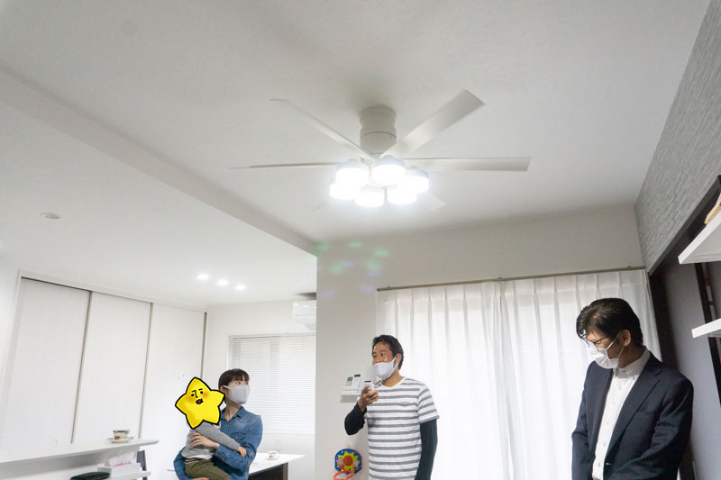 「あとグレードをあげた部分といえば、このシーリングファン。