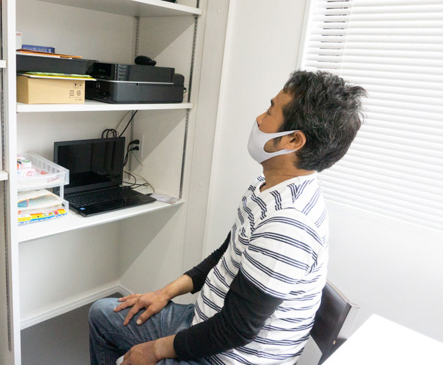ここだと日当たりがいいのと、扉を閉めたらリビングから見えないんですよ〜」