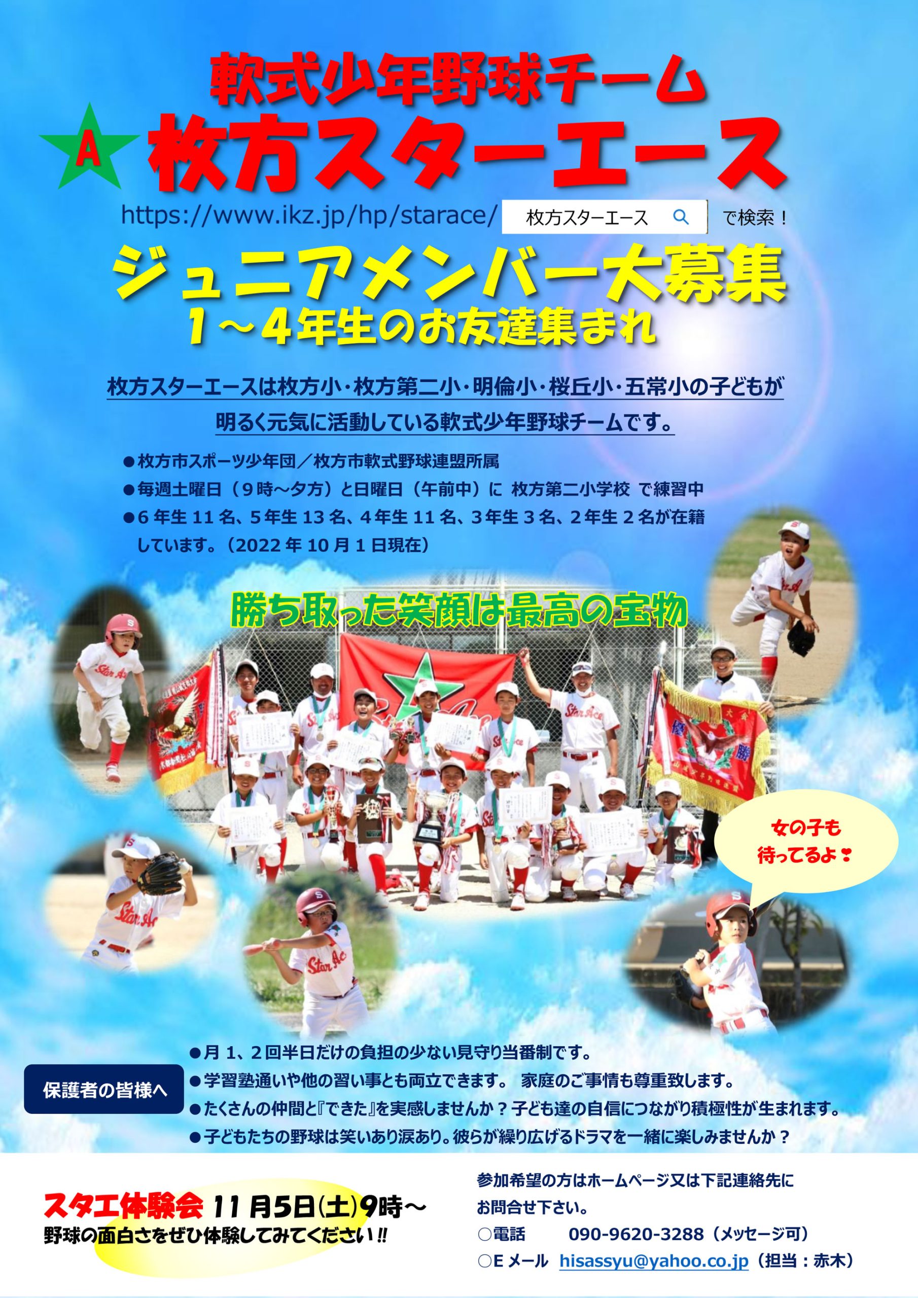 「枚方スターエースは一日体験・部員募集を随時受付中です!