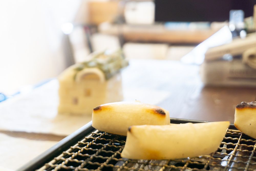 あ、お腹空いてきたんで端材…じゃなくてお餅焼いてます。