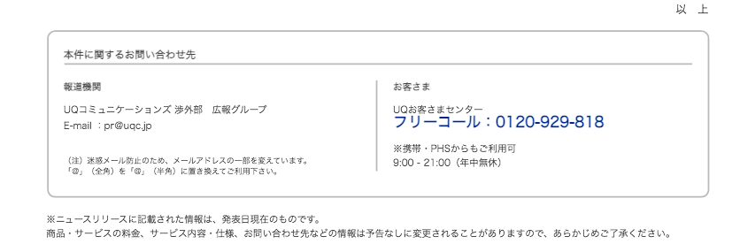 UQコミュニケーションズサイトより一部抜粋。