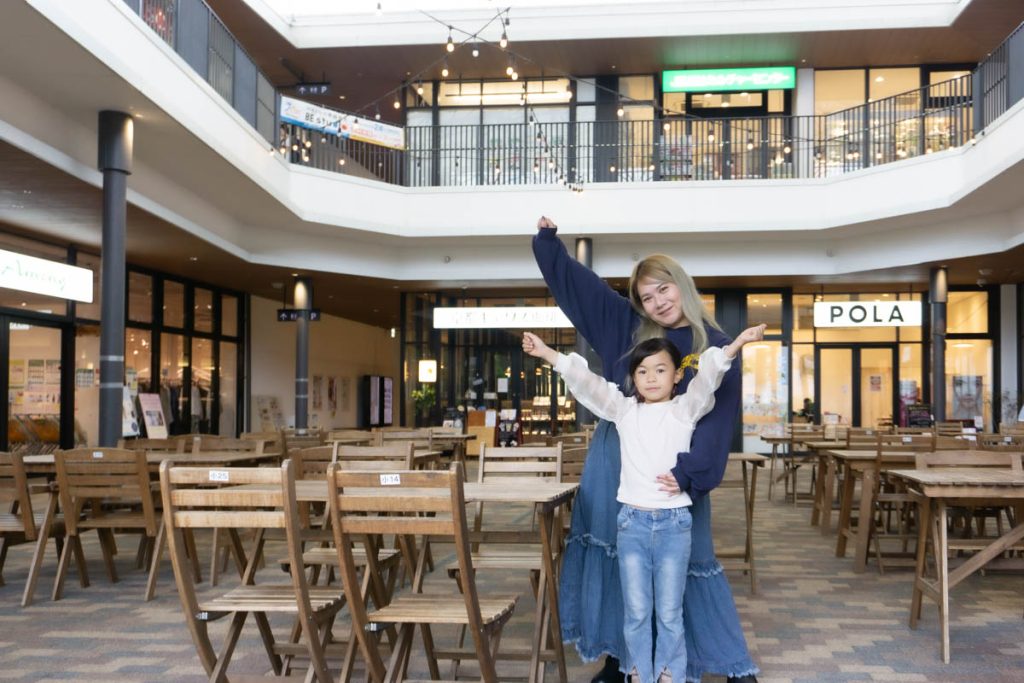 モモ親子が食べていた場所、雨でも安心の屋根付きライトコートで、わくわくのイベントが開催されますよ〜