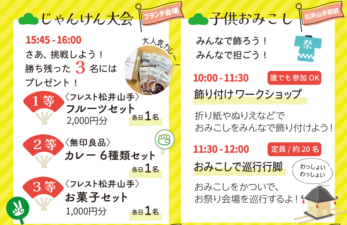 「じゃんけん大会」「スタンプラリー」といった景品も当たるイベントに…