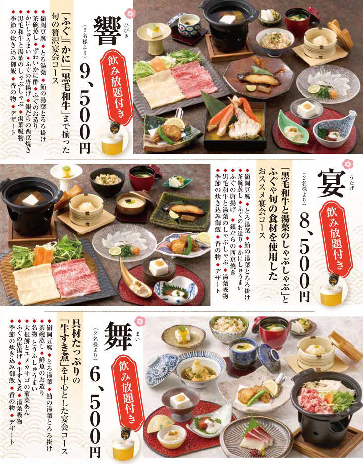 忘年会や新年会におすすめの、飲み放題付きの大満足コースも登場しています!