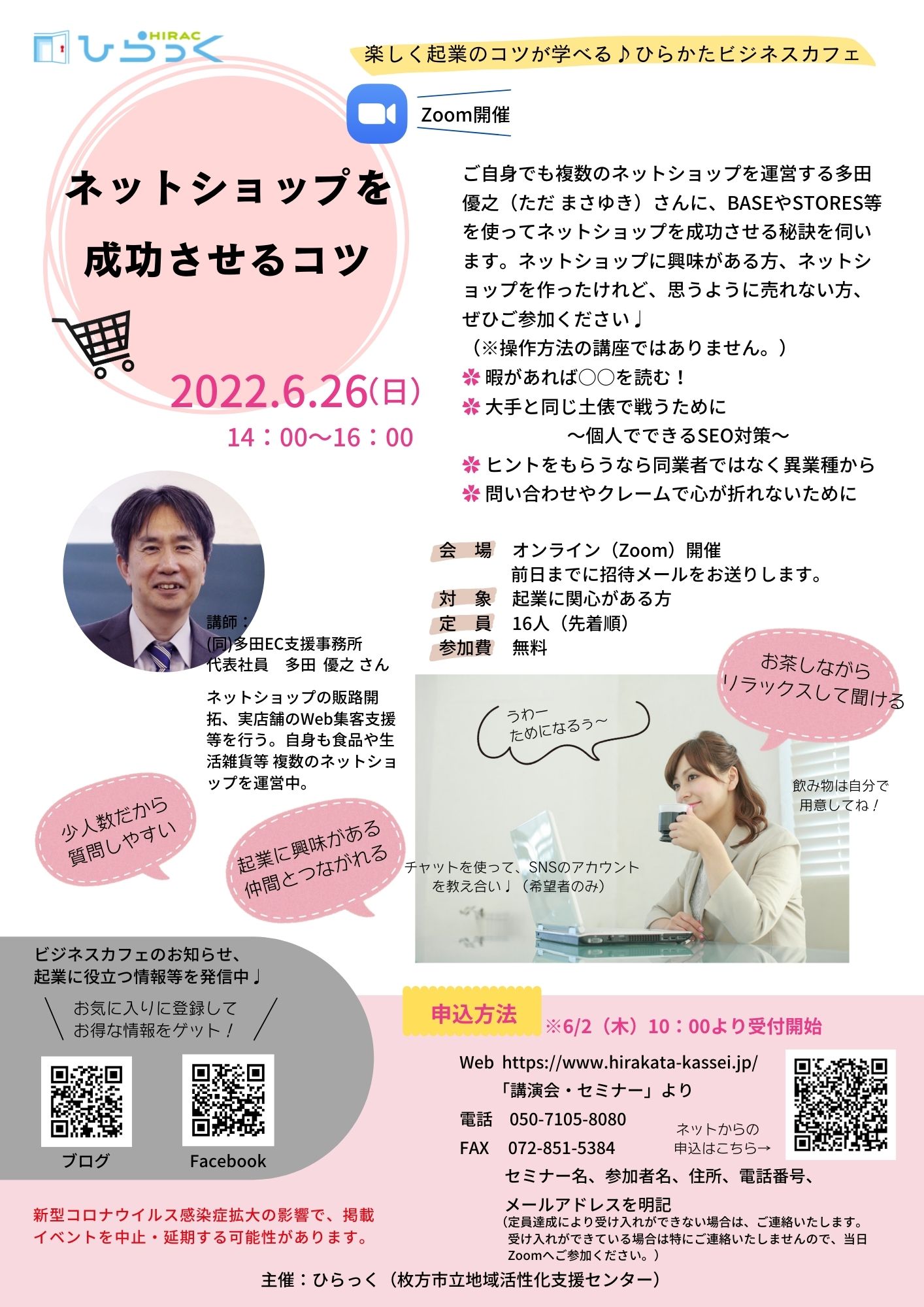 BASEやSTORESなどのネットショップの使いこなし術について、ご自身でも食品や生活雑貨など、複数のネットショップを運営している多田さんにお話ししていただきます!