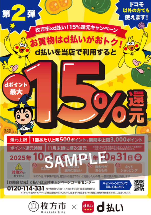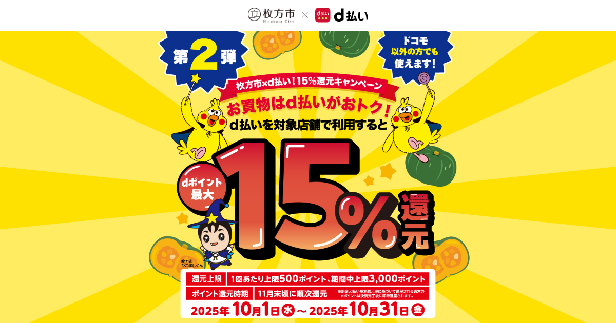「枚方市×d払い!15%還元キャンペーン第2弾」注意事項