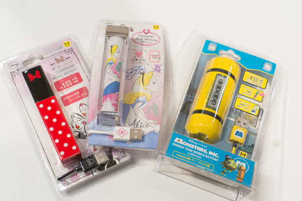 スティック型充電器は持ち運びに便利な形ですね。モンスターズインクの充電器は少し大きめですが、実際に作品に出てくるエネルギータンクそのもので可愛いー![]()