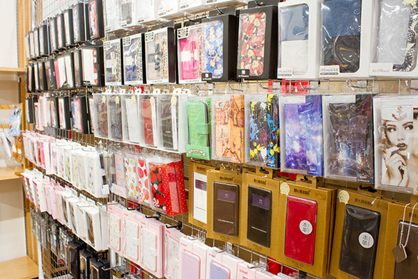 かわいいアクセサリーや実用的なガラスカバーも大量にあります。人と同じカバーは嫌!という人は一見の価値アリ