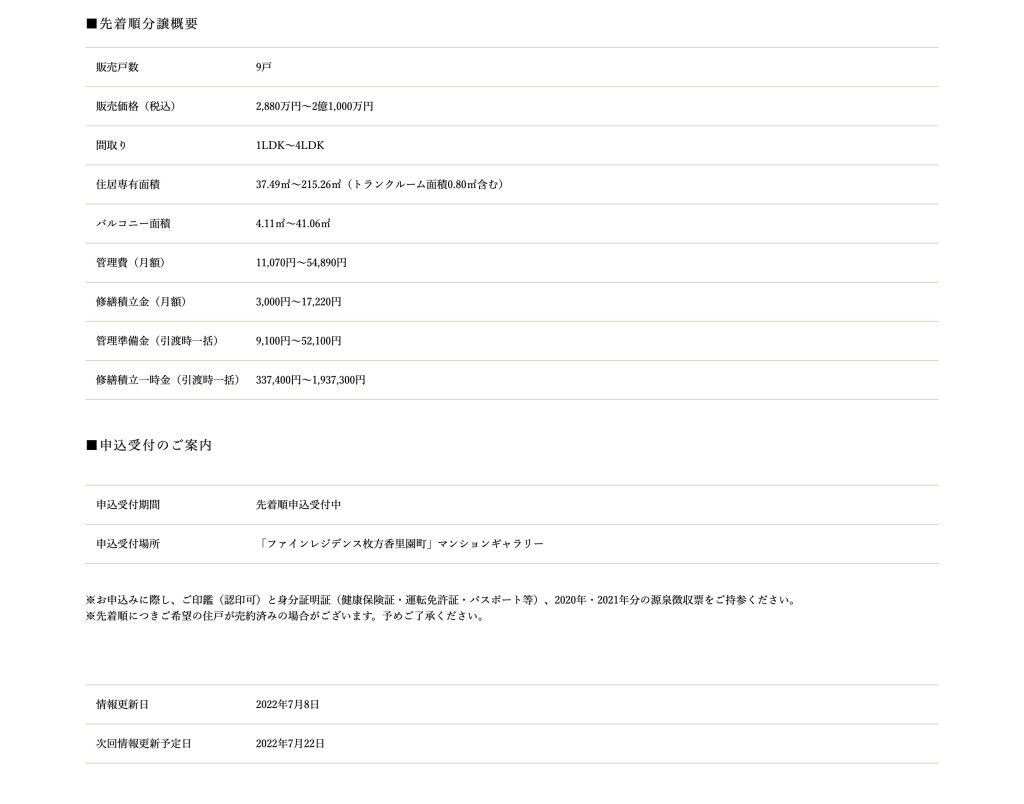 お問い合わせの際は「ひらつーで”ファインレジデンス枚方香里園町”の記事を見た」とお伝えいただくと話が早いと思います!(すでに販売が終了している場合もありますのでご了承ください。)