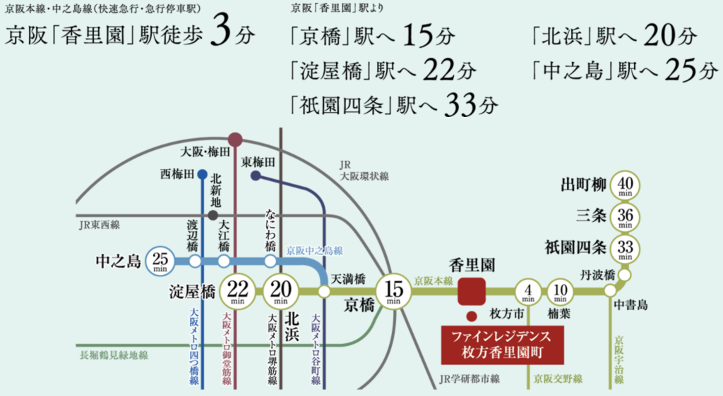 香里園駅周辺は京阪電車の高架化事業でさらに便利になりそうやし、楽しみ!!
