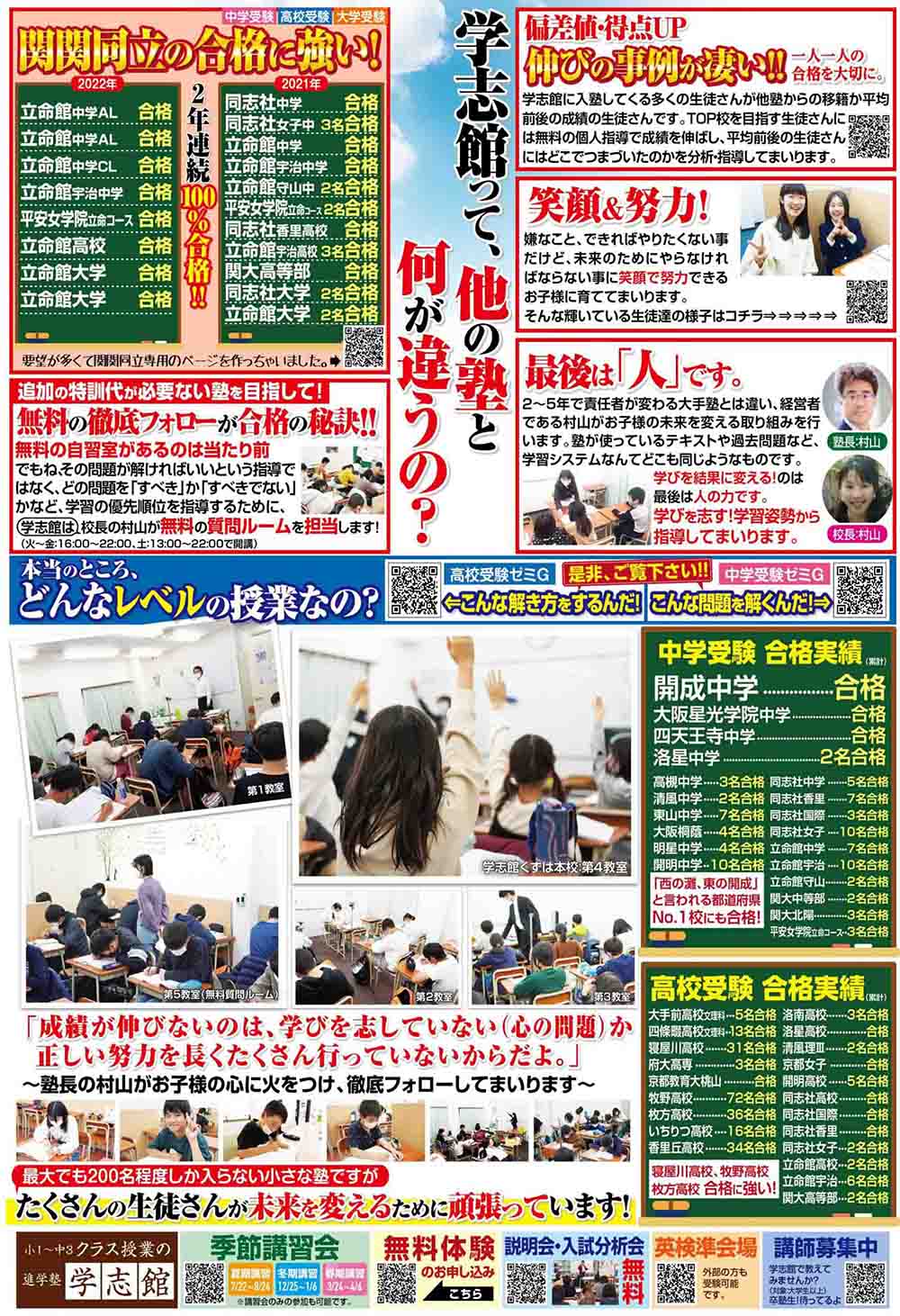 関関同立の合格に強い学志館ですが、大阪No.1男子校の大阪星光、四天王寺中、洛星中などの合格も続々出ています。