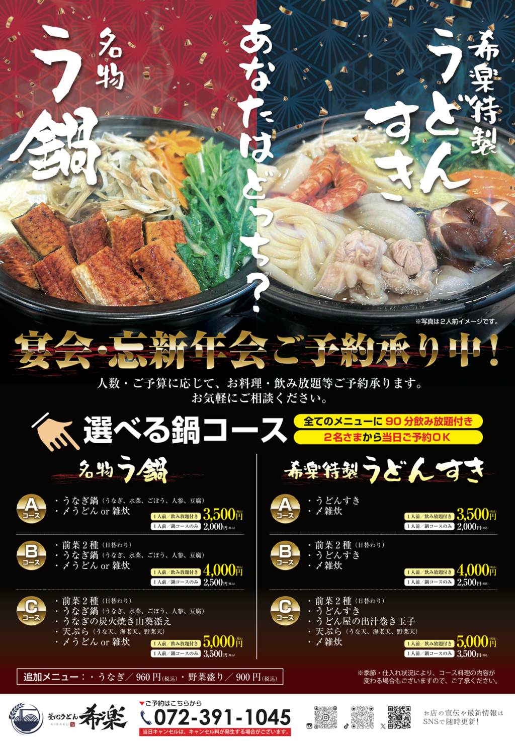 すきやき、かも鍋のお肉鍋にかにすき、てっちりのお魚鍋‼