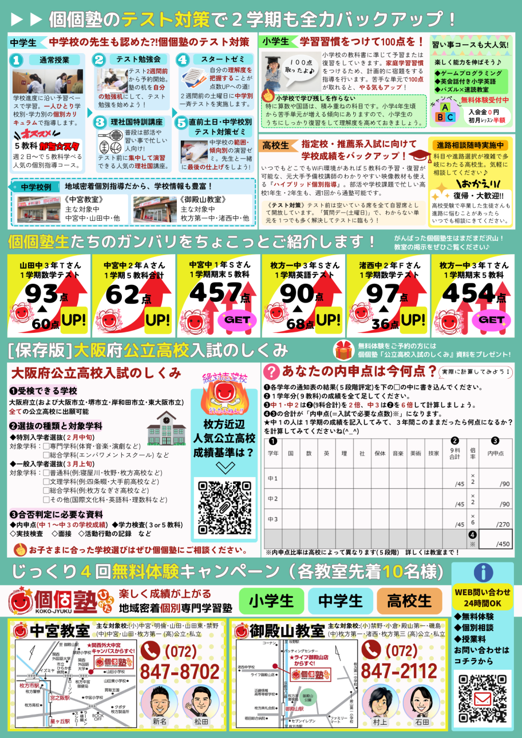 枚方市内や近隣にある、ひらつー電話帳会員さんのチラシをまとめてみました。