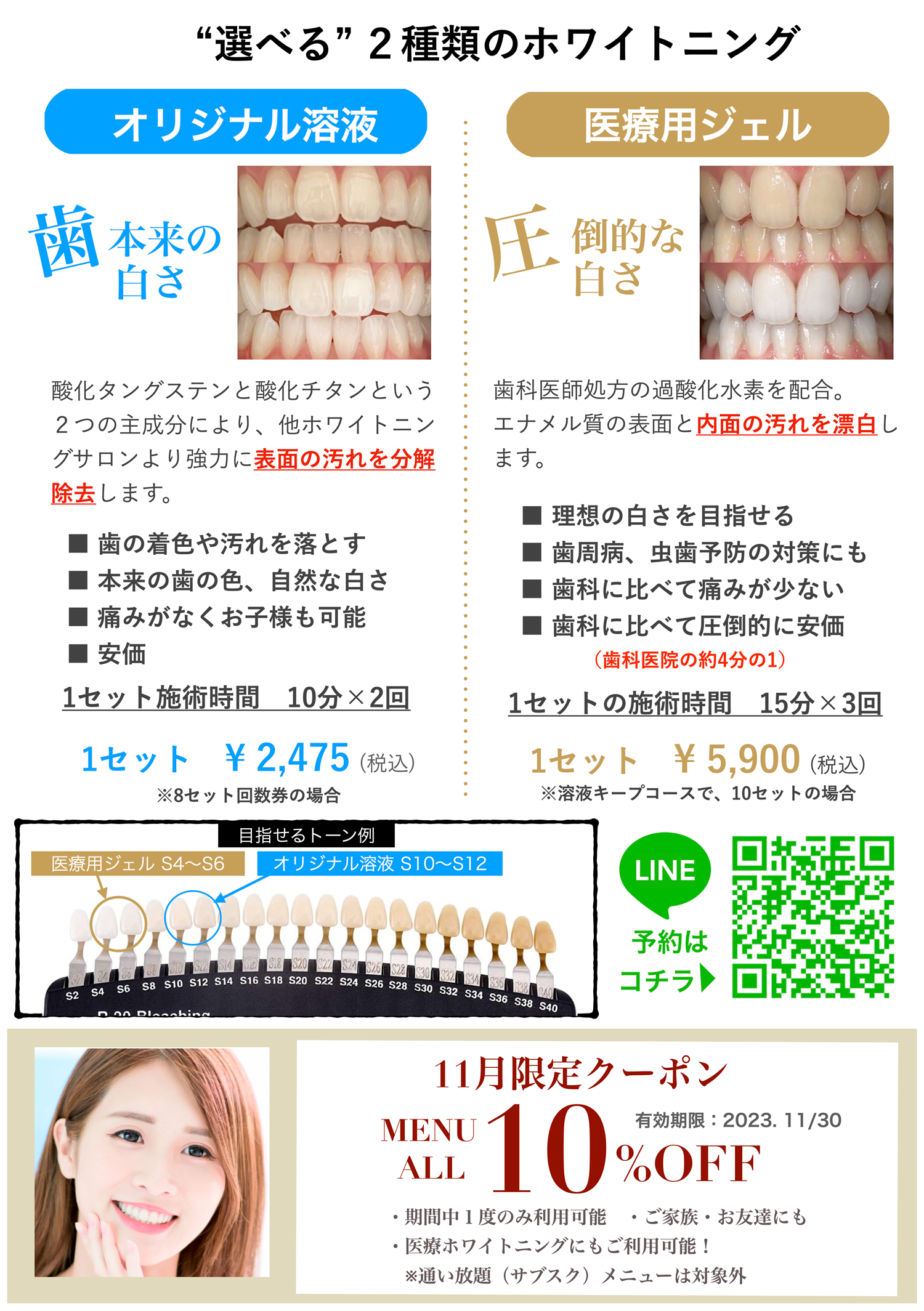 歯科医院でしか取り扱えない過酸化水素配合ジェルで理想の歯色に♪