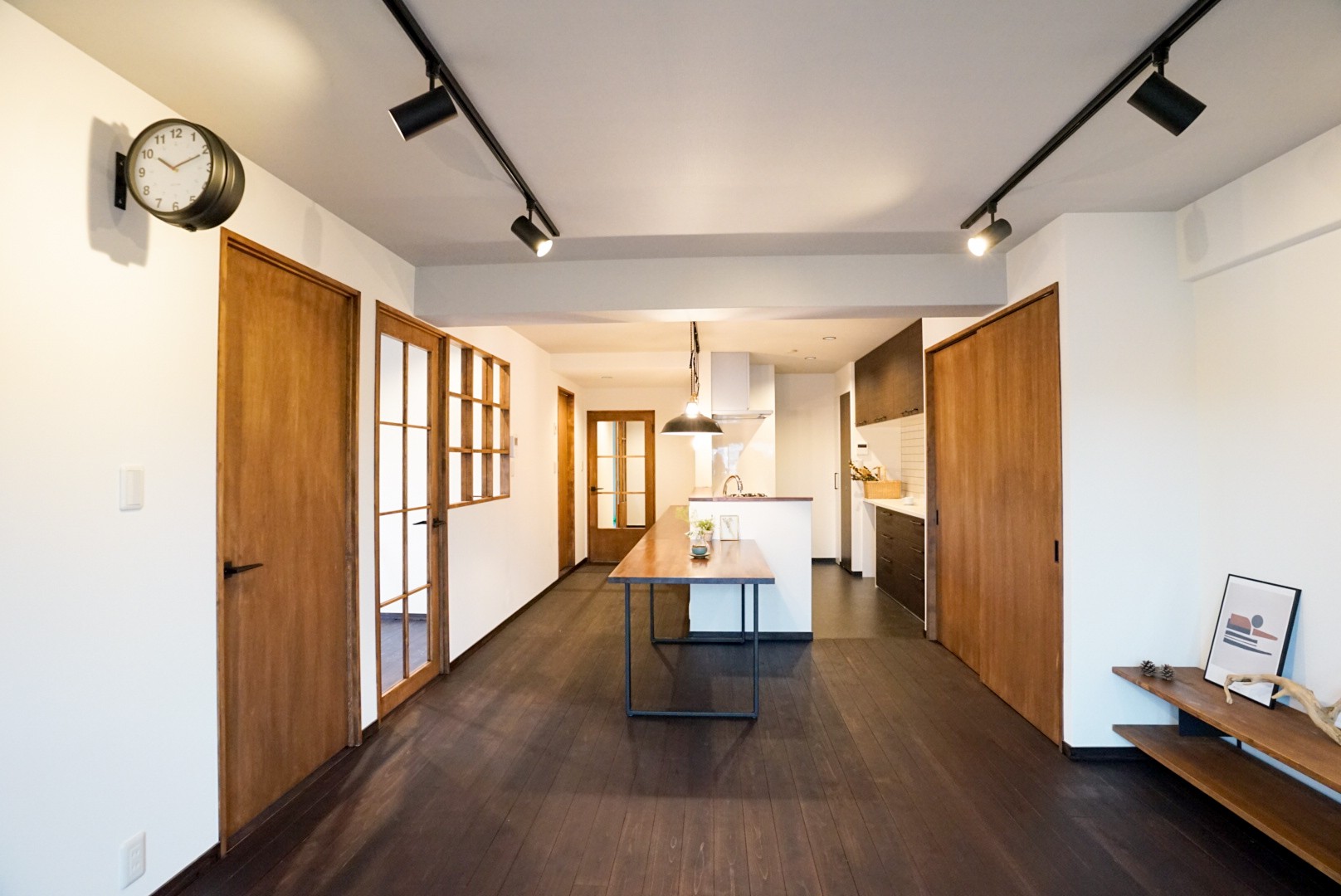 リビングの壁は家族で塗りました!リノベーションで木の温もりがいっぱいのカフェ風キッチンのお家に変身!【ひらつー不動産】
