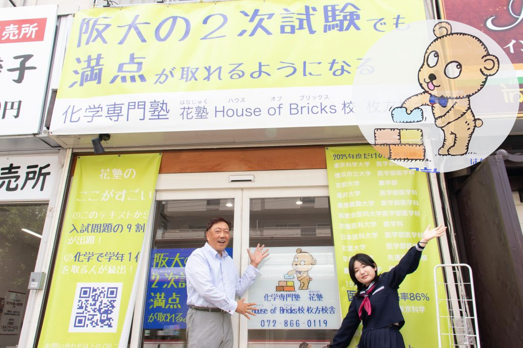 ここ、花塾 House of Bricks校は東京で入塾待ちができるほどの人気塾「花塾」が特別認定した大阪府唯一の校舎なんです。