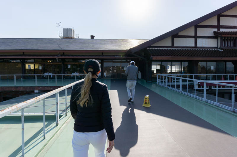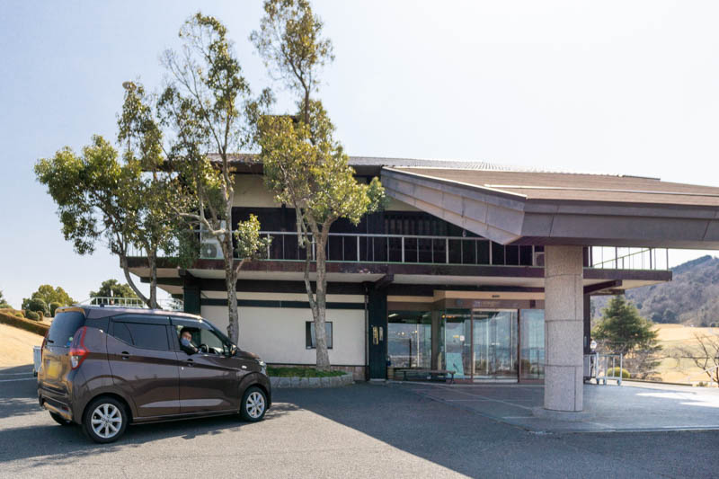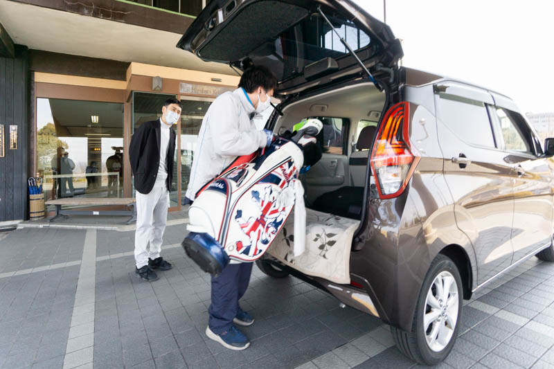 枚方国際ゴルフ倶楽部のクラブハウス前まで車でやって来た2人。
