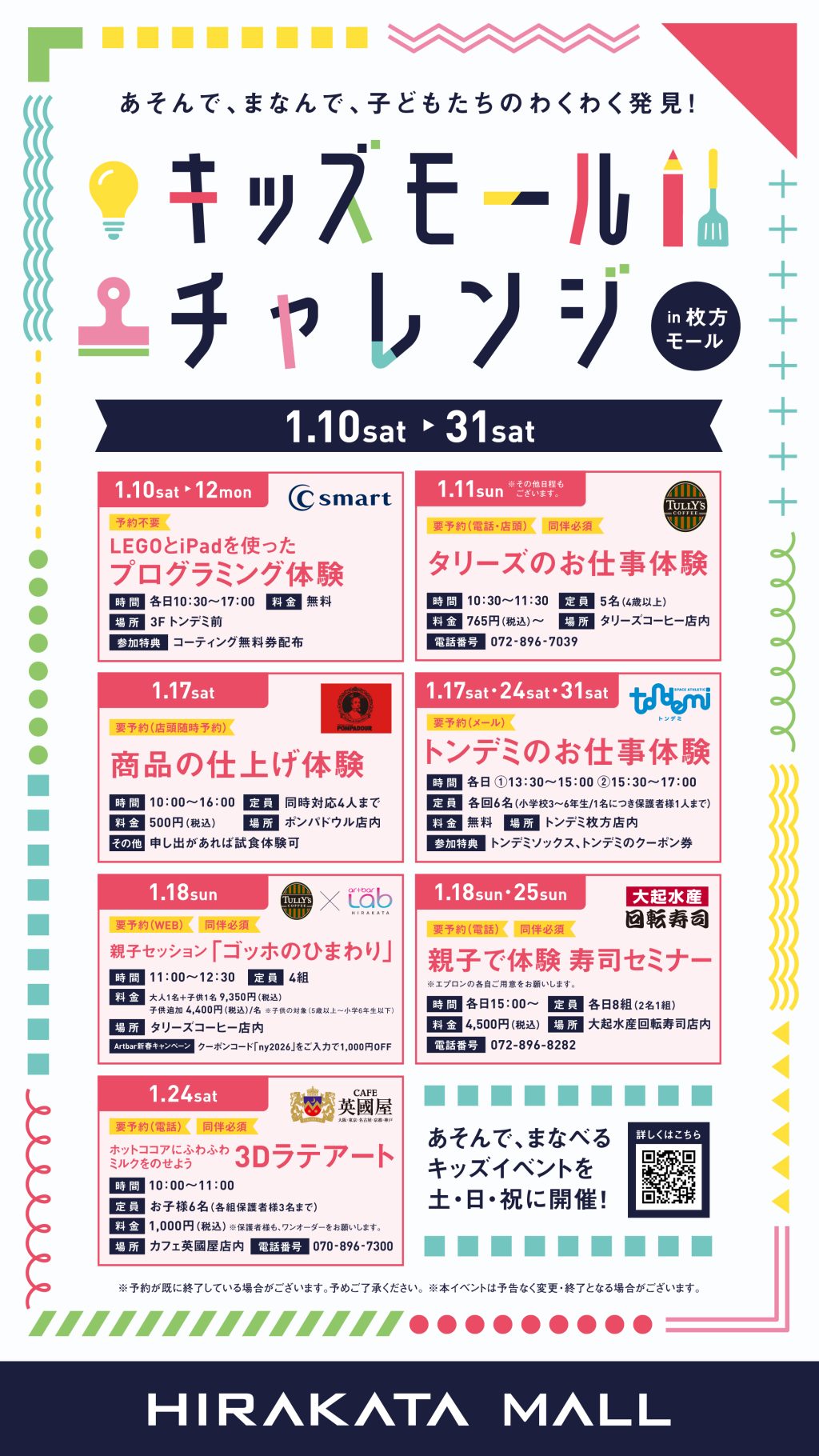 1月中に開催されていたキッズモールチャレンジ in 枚方モールですが、先ほどご紹介したトンデミ枚方以外でもたくさんのチャレンジが開催されていたんです!