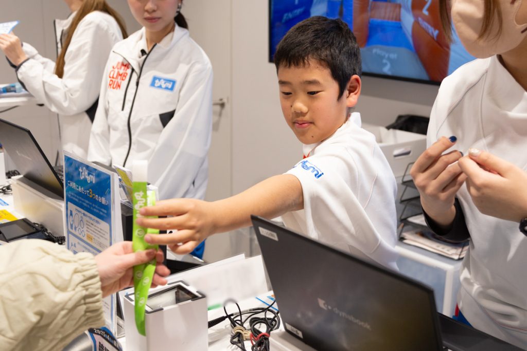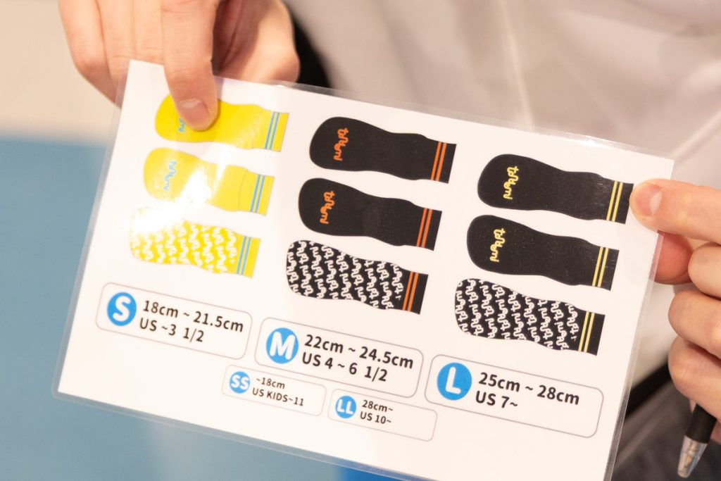 お客さんが安全に遊べるように専用のグリップソックスと入館証代わりのリストバンドを渡します。