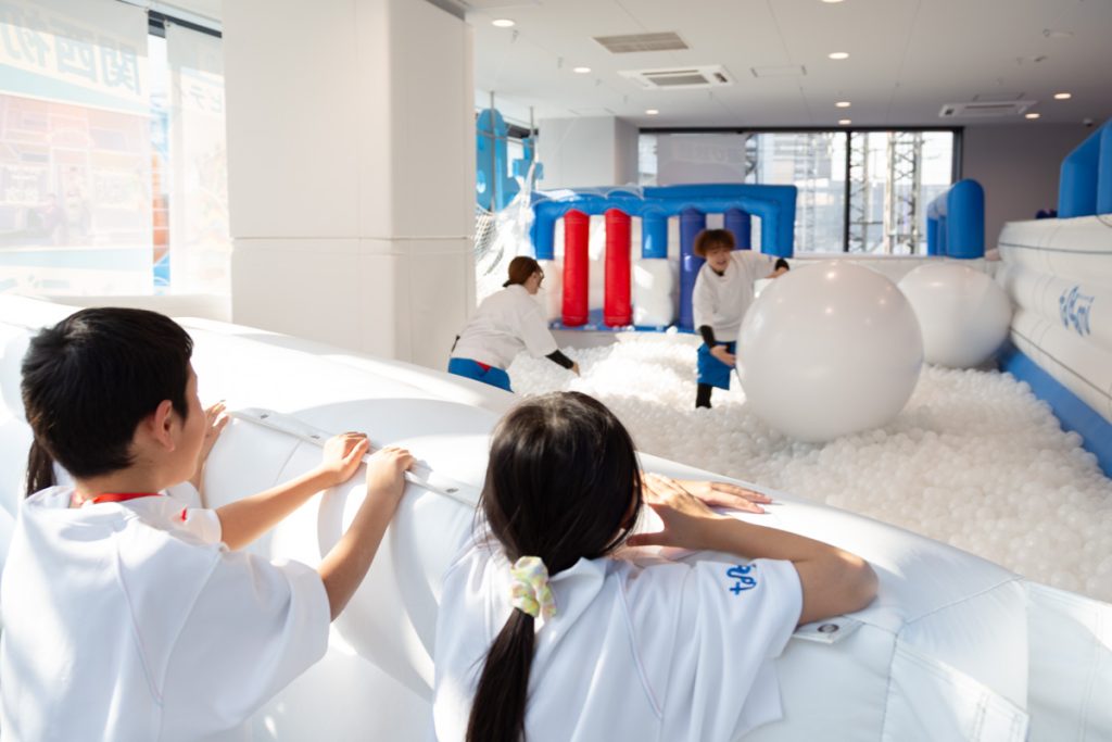 巨大なエアー遊具の障害物コースを駆け抜ける『エアーラン』。