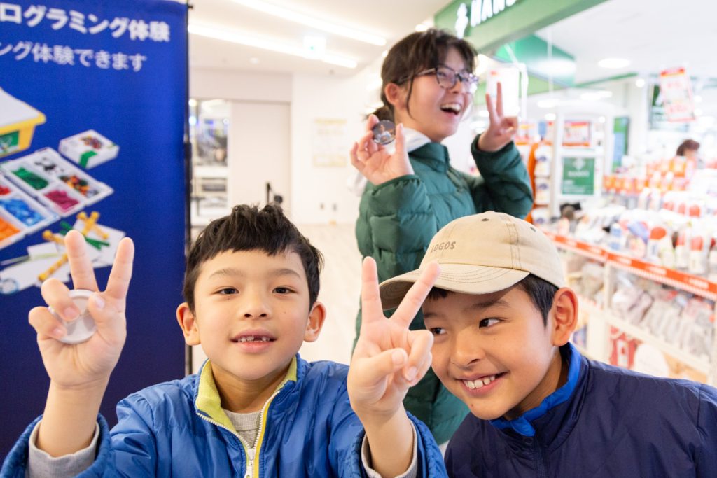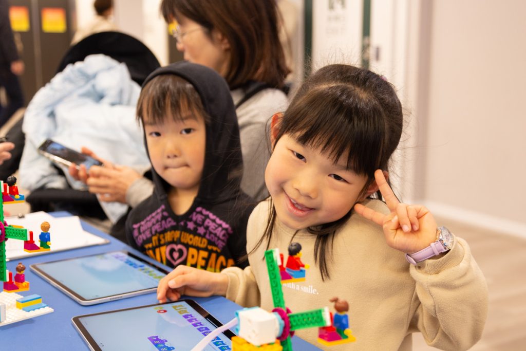 最新のデバイスを操作してLEGOが動いたときにはみんな喜びの表情!